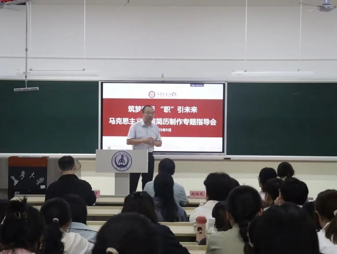 为进一步提升学生职业规划意识和求职核心竞争力,助力2026届毕业生做好求职准备,9月4日,太阳成集团tyc4633在南校区B301教室举办“筑梦青春,‘职’引未来”简历制作及面试技巧专题指导会。本次讲座特邀太阳集团tyc4633招生就业处就业指导教研室主任赵裕民作专题指导。院党委副书记冯迪,学办副主任兼团委书记秦丰,辅导员张子婧及学院2026届全体毕业生、其他年级部分学生参加此次活动。赵裕民围绕"职业规划"与"就业准备"两大主题展开深入讲解。...