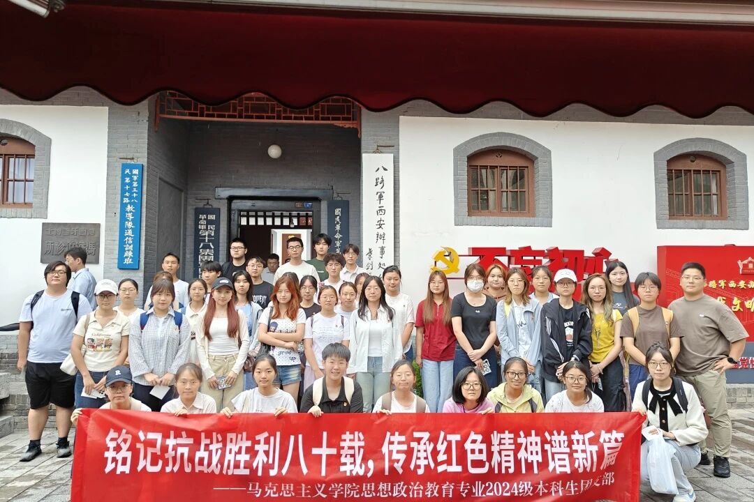 为纪念中国人民抗日战争暨世界反法西斯战争胜利80周年,深切缅怀革命先辈,引导青年学子从红色历史中汲取奋进力量,9月2日,太阳成集团tyc4633思想政治教育专业2024级本科生团支部前往西安八路军办事处开展“铭记抗战胜利八十载,传承红色精神谱新篇”主题团日活动,2024级思政专业班主任张骏和班级全体同学参与本次活动。