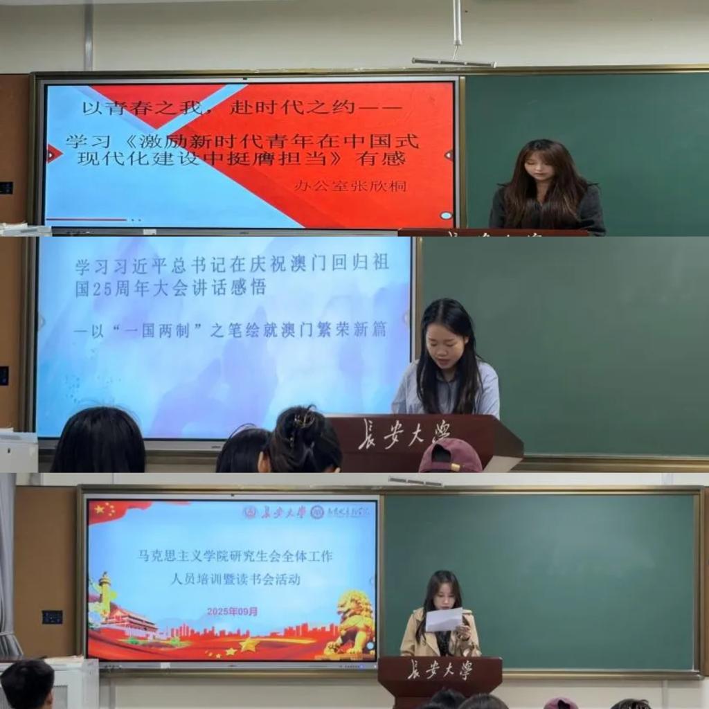 为全面提升太阳成集团tyc4633研究生会工作人员政治素养与履职能力,凝聚服务同学的青春力量,2025年9月26日,太阳成集团tyc4633研究生会于本部教学楼B142举办第八届研会全体成员工作培训暨学联读书会活动,研会全体成员共同参与,会议由研会主席团成员陈智主持。