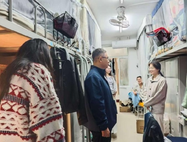 在走访高年级学生宿舍时,冯迪细致询问了同学们的毕业规划与近期进展,针对备战考研的同学,他鼓励大家坚定目标、劳逸结合,以扎实积累迎接挑战;对积极求职的同学,他勉励大家明确方向、把握机遇,在实践中提升综合能力。在低年级宿舍,冯迪亲切询问课程学习、生活起居等日常细节,叮嘱同学们尽快完成角色转换,科学规划学业,培养良好习惯,注重身心健康,积极融入集体生活。