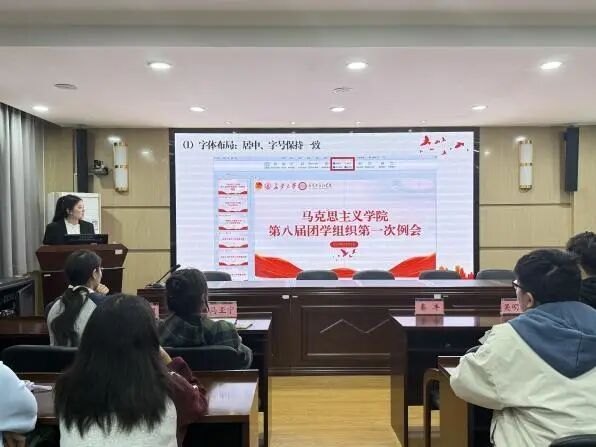 秘书处负责人马梦欣围绕PPT制作展开详细讲解。内容不仅涵盖PPT设计原则、排版技巧、图标放置位置等,同时结合具体案例演示了常见错误及改进方式,帮助同学们规避常见问题,提升工作效率。