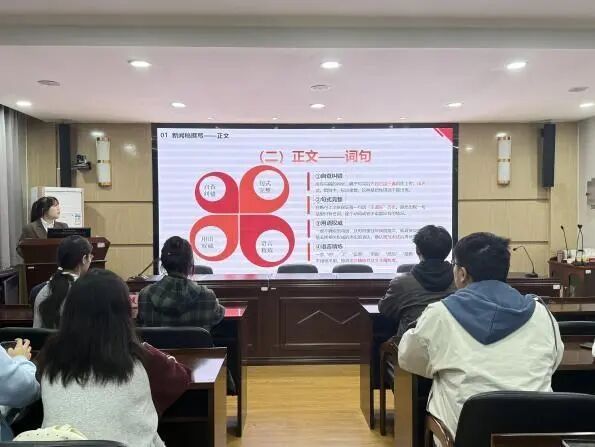 学习部负责人冯泊敏重点讲解了新闻稿的撰写方法与注意事项,现场展示了优秀范文,逐一说明了活动证明的开具流程、审批步骤与相关模板使用,助力新成员尽快熟悉日常事务处理。