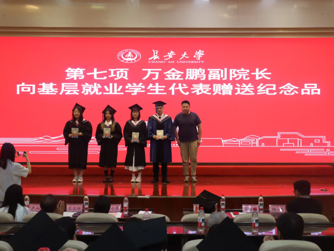 副院长万金鹏向基层就业学生代表赠送纪念品。