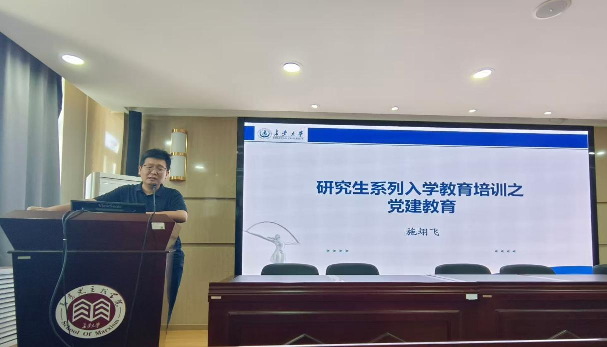 施翊飞从学院研究生党员情况、入党发展总则、入党考察内容三方面进行了介绍。施翊飞详细讲解了入党条件、党员发展流程等问题,鼓励同学们积极向党组织靠拢,成为有理想、敢担当、能吃苦、肯奋斗的新时代好青年。