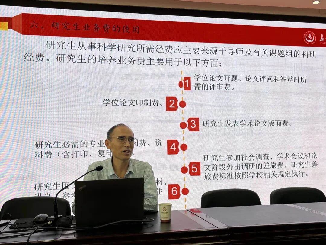 冯迪针对研究生奖助体系、综合测评、就业前景和图书馆马列分馆管理等四个方面开展专题培训。冯迪要求同学们严格遵守校规校纪,坚守学术道德,主动与导师沟通,科学规划职业生涯,着力提升理论创新能力、文字写作能力和沟通交流能力。
