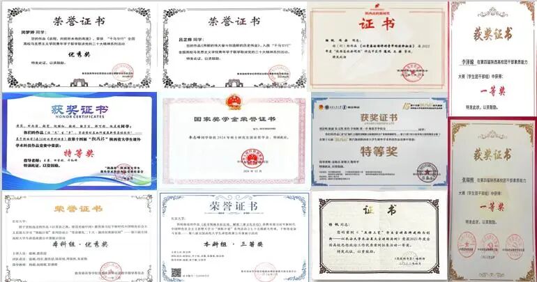 支部培树模范典型,发挥示范带动效应。支部成员广泛参加全国高校大学生思政公开课大赛、铸牢中华民族共同体意识主题微宣讲比赛、国家安全知识竞赛等系列活动,累计获得国家级奖项56项、省部级奖项68项。支部成员在教育部“领航计划”大学生思政公开课展示活动获得国家二等奖、三等奖、优秀奖各1项,团队参与创作的思政微电影获得全国二等奖、优秀奖各1项;推选3位成员入围全国思政夏令营,并获得优秀营员称号。在理论宣讲比赛中斩获陕西省特等奖、一等奖、三等奖、优秀组织奖等奖项6项。