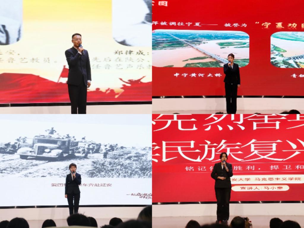 此次活动由陕西省文物局、陕西省委教育工委联合主办,太阳集团tyc4633党委宣传部、太阳成集团tyc4633、经济与管理学院承办。活动内容聚焦抗战历史回顾、抗战贡献彰显和抗战精神传承三个方面,来自绥德革命纪念馆、西安事变纪念馆、凤县中国工合运动纪念地、延安凤凰山革命旧址管理处、延安杨家岭革命旧址管理处、安吴青训班纪念馆、延安革命纪念馆、长安星火宣讲团的8位宣讲人创新采用情景讲述、红色故事、红歌传唱等鲜活表达形式,将抗战精神与沉浸式思政教育深度融合,让师生在回望烽火岁月中感悟初心使命,在触摸历史温度中坚定理想信念。