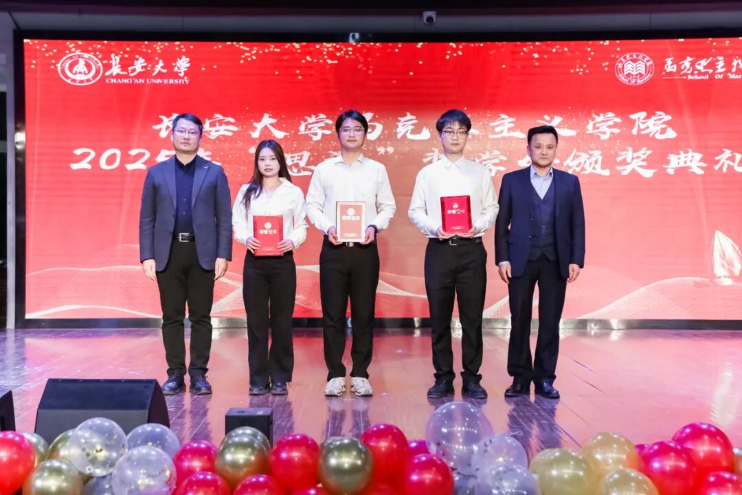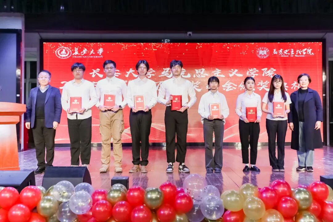 学校领导、职能部门领导与校友为获奖学生颁奖,并合影留念。