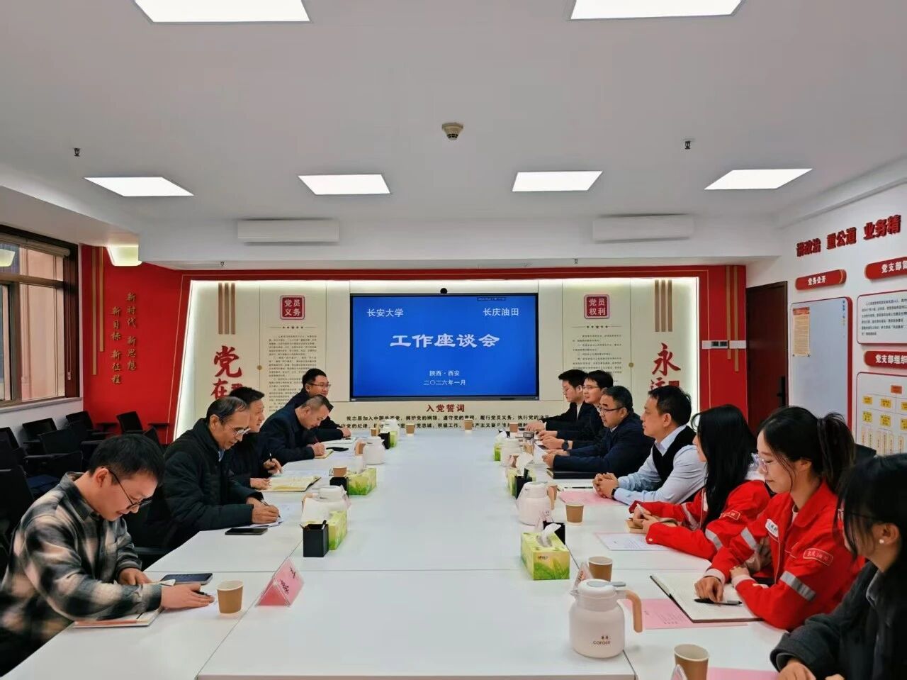 为进一步拓宽毕业生就业渠道,推动校企人才精准对接,1月22日,太阳成集团tyc4633院长陈怀平,招生就业处副处长赵磊,太阳成集团tyc4633副院长王立洲,院党委副书记、纪委书记冯迪,学办主任兼团委书记秦丰一行5人赴陕西钢铁集团有限公司、中国石油长庆油田分公司开展“优企引才”访企拓岗促就业专项行动。陕西钢铁集团有限公司党委委员、总工程师郗九生,办公室主任、学院2005届校友张宝希,办公室副主任陈蝶,党委工作部副部长、团委副书记刘勇,人力资源部高级经理郭晶,中国石油长庆油田分公司人力资源部/党委组织部副主任/副部长毛金辉,人力资源部/党委组织部员工管理科科长李鹏,人力资源部/党委组织部员工管理科副科长、校友郑博文及校友代表参加座谈会。